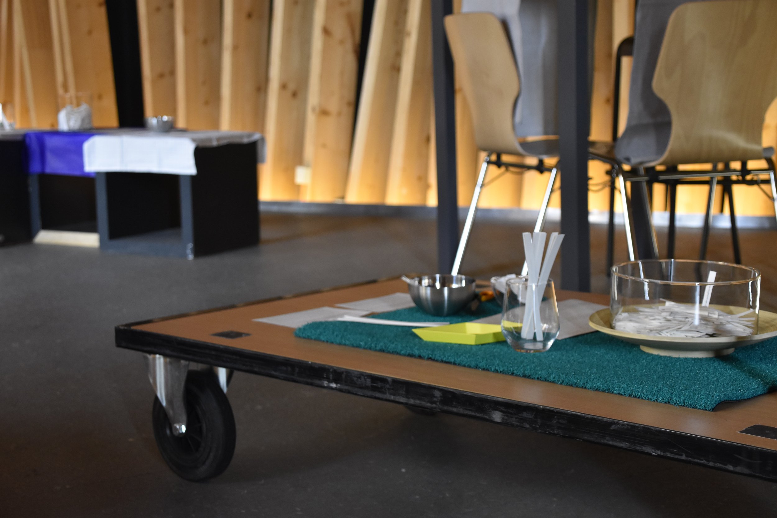 Interactive participatory writing workshop and co-writing process during Triennnale Jeune Création 2017 at Rotondes, Luxembourg