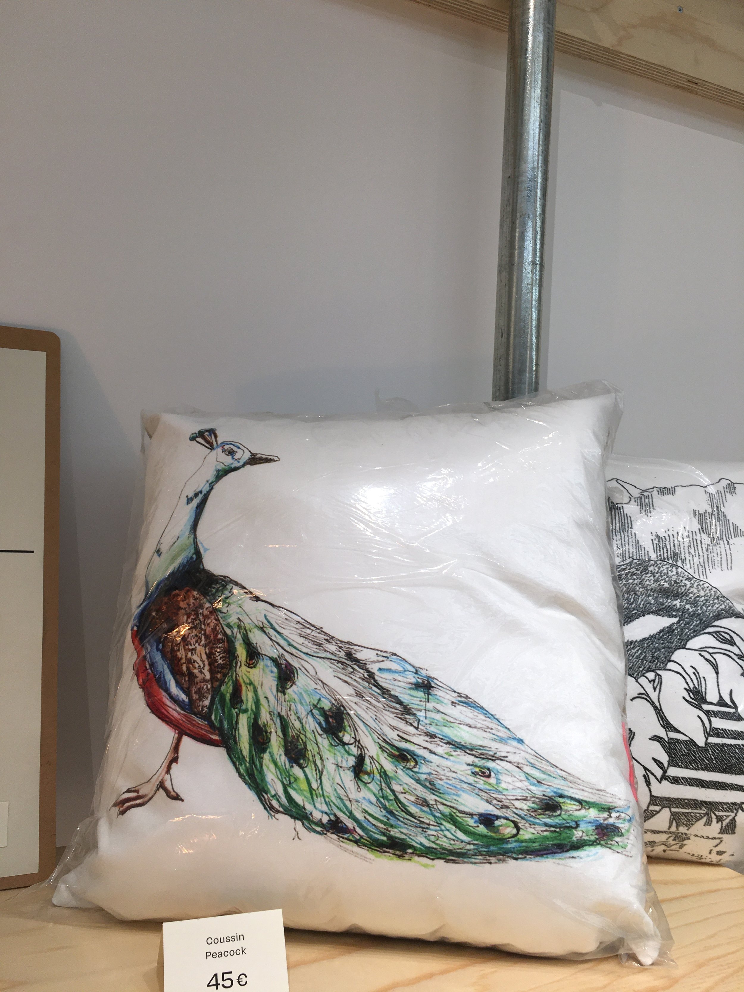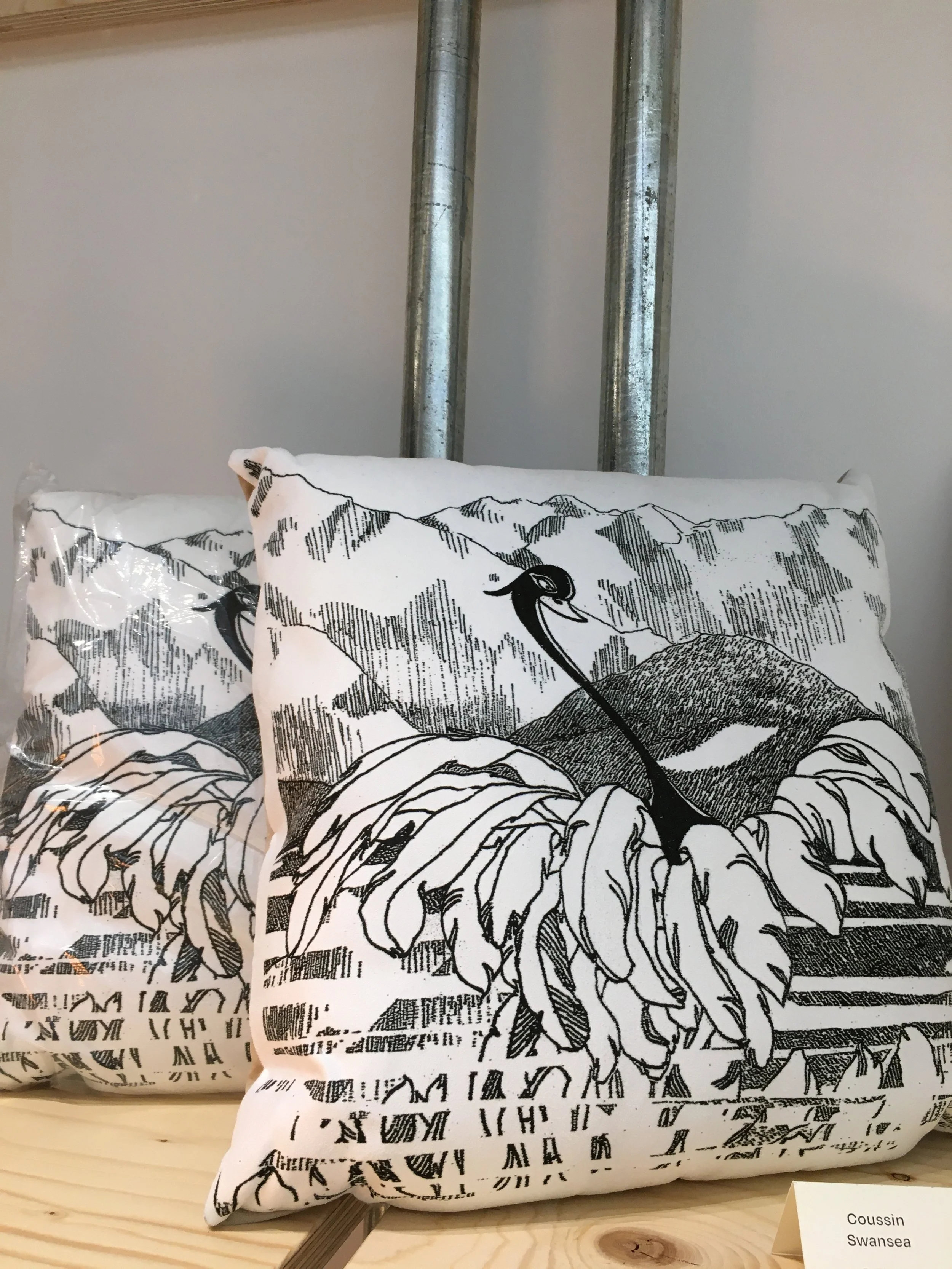 Limited edition pillow with a black and white illustration printed on soft vegan suede. The pillow is sold including the filling, back in beige suede.