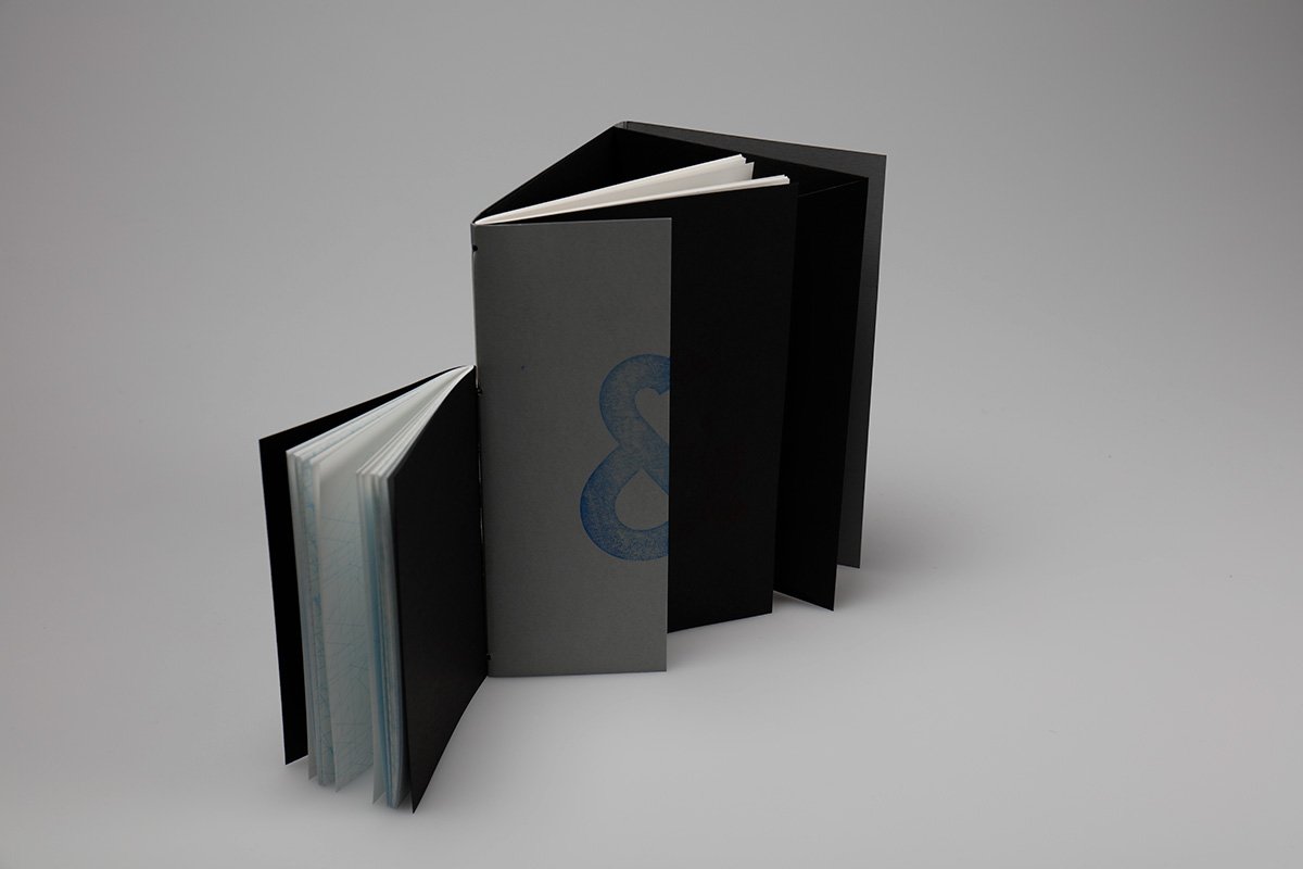 a 3-in-1 &Luxembourg notebook featuring a small A6 booklet with typographic grids inspired by buildings in Luxembourg, a blank A5 notebook, a folder, and held together with a sleeve; for keeping all your inspiration in one place. For & type lovers, writers, sketchers, explorers.